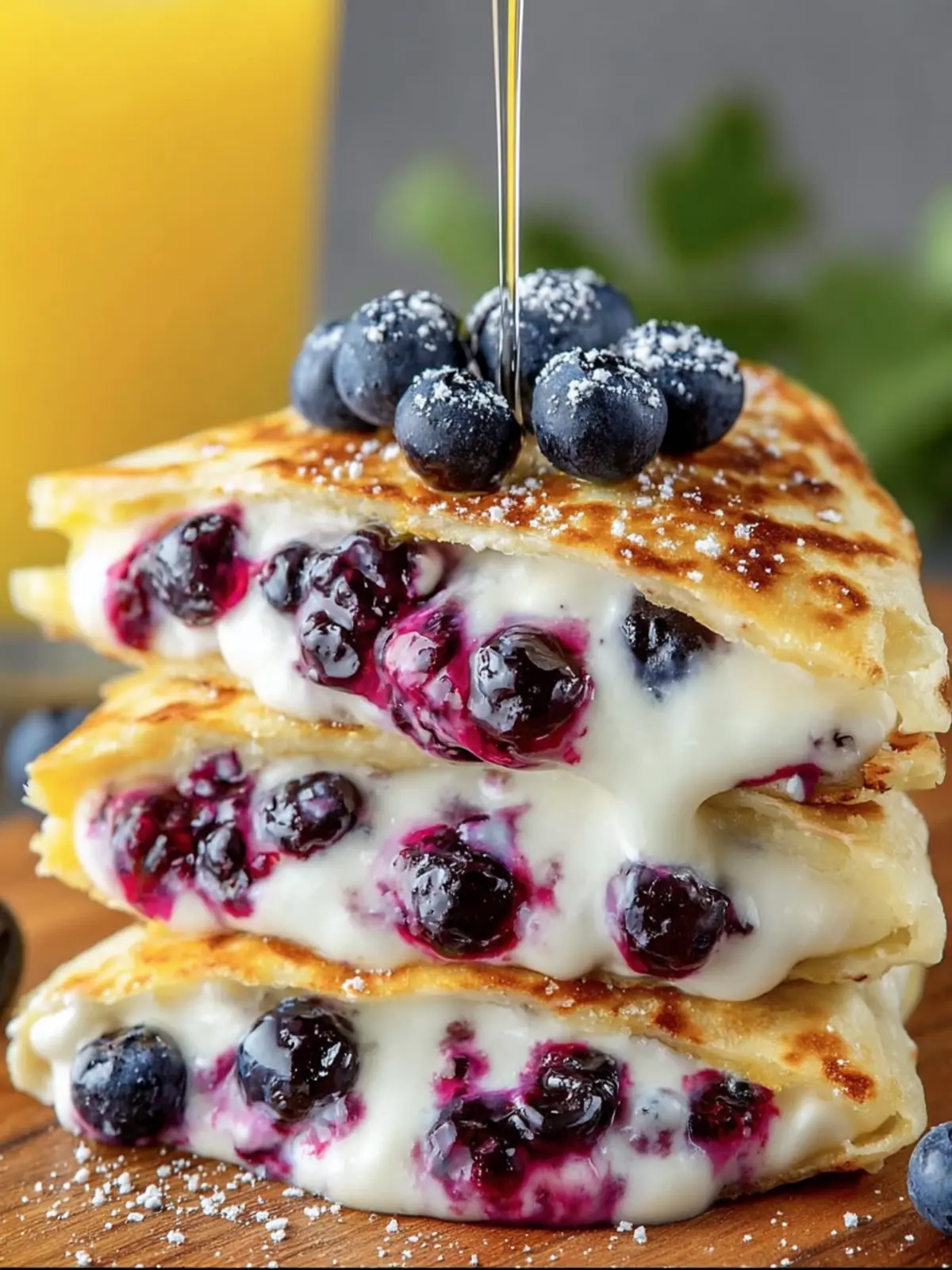 Texture Contrast: The crispy exterior of the tortilla beautifully contrasts with the gooey, melted cheese and juicy blueberries inside. This interplay keeps every bite exciting.