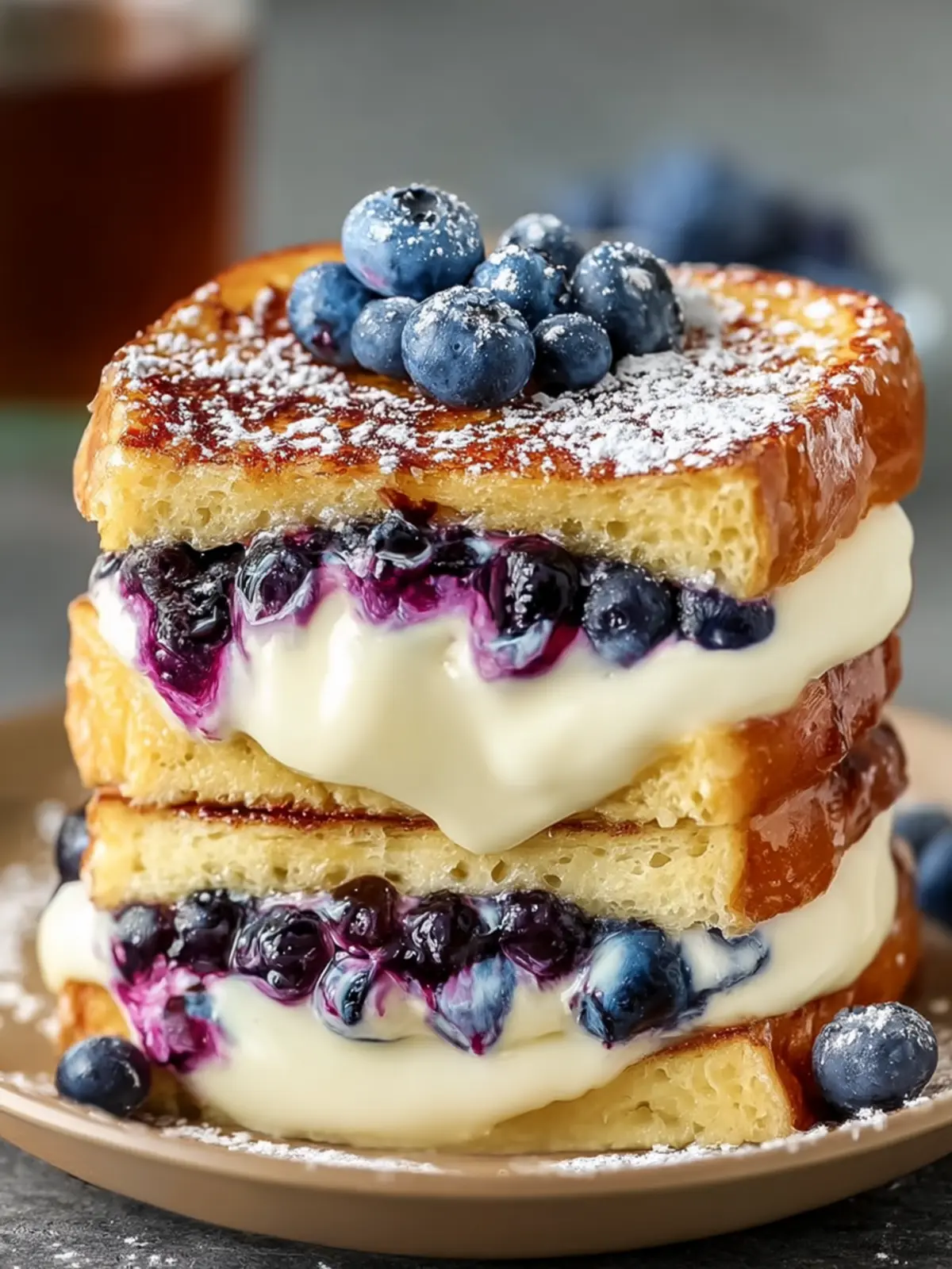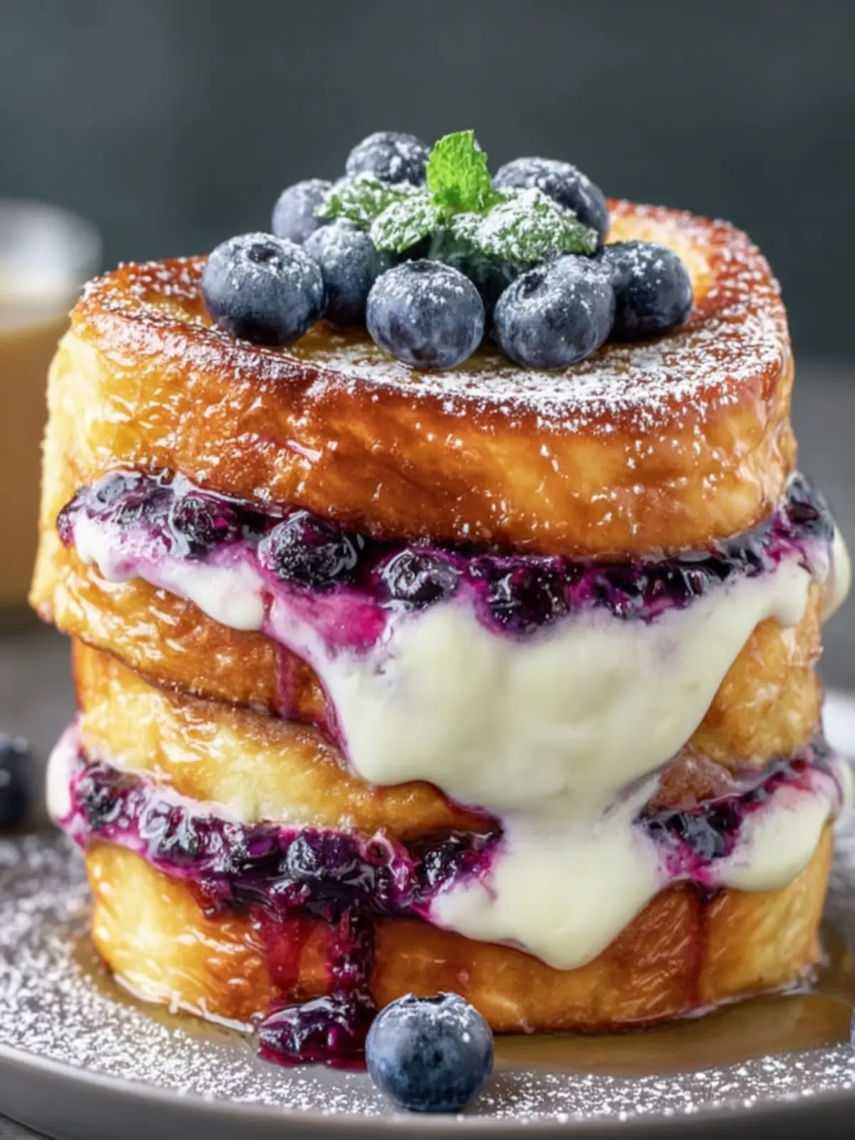 What makes this French toast so special? It’s all about the harmonious blend of flavors and textures. Picture fluffy slices of golden-brown bread, expertly soaked in a cinnamon-infused egg mixture, enveloping a luscious center of cream cheese and fresh blueberries. Each bite is a delightful juxtaposition of sweet and tangy, creamy and crispy, leaving your taste buds dancing and your stomach satisfied. It’s the perfect indulgence for lazy weekends, brunch gatherings, or even a cozy breakfast-for-dinner moment.