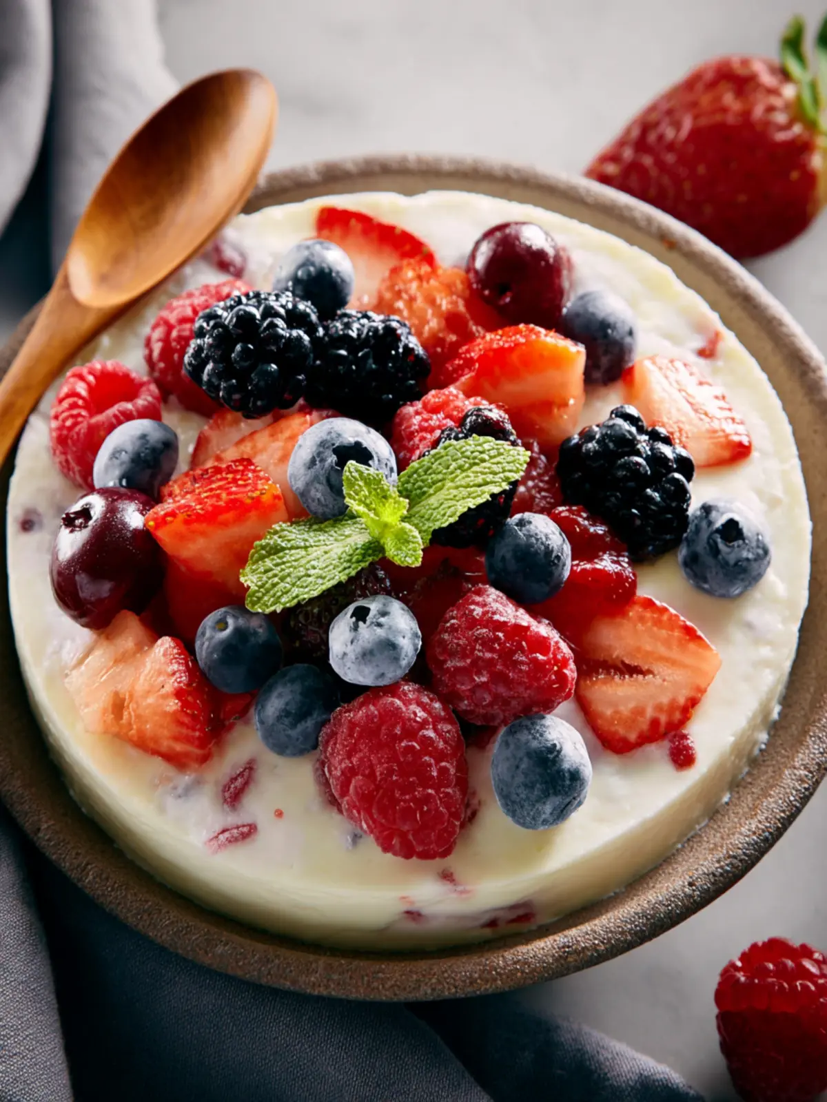 This refreshing berry yogurt salad combines creamy yogurt with fresh berries, making it the perfect dessert or side dish for any occasion.