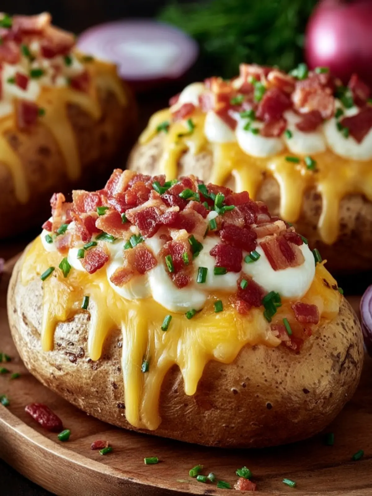 - Comfort in Every Bite: There’s something undeniably comforting about a piping hot baked potato, especially one that’s brimming with gooey cheese and crispy bacon.