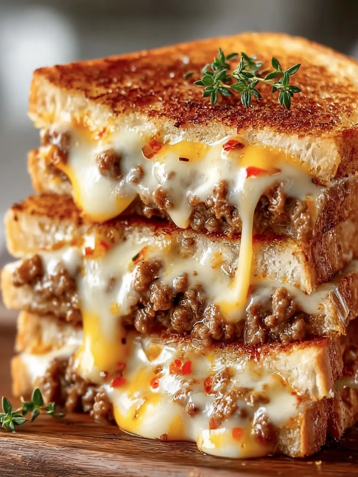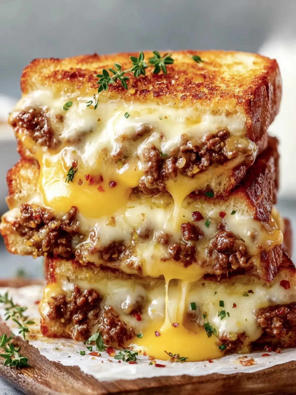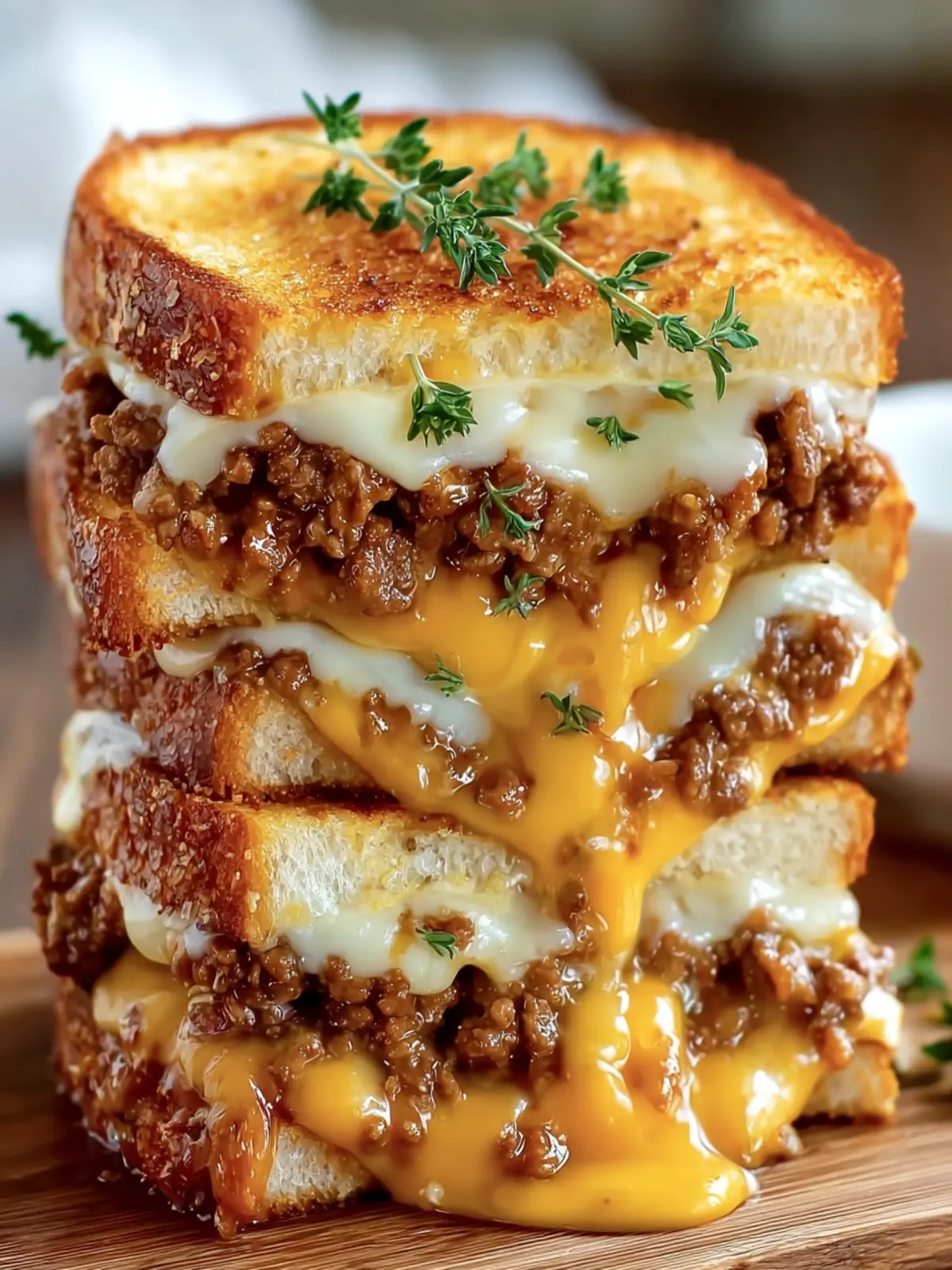 - Assemble the Sandwich: Preheat a griddle or skillet over medium-low heat. Butter one side of each bread slice. Place one slice of bread, buttered side down, on the skillet. Add a layer of cheese, a generous portion of the beef mixture, and another layer of cheese. Top with another slice of bread, buttered side up.