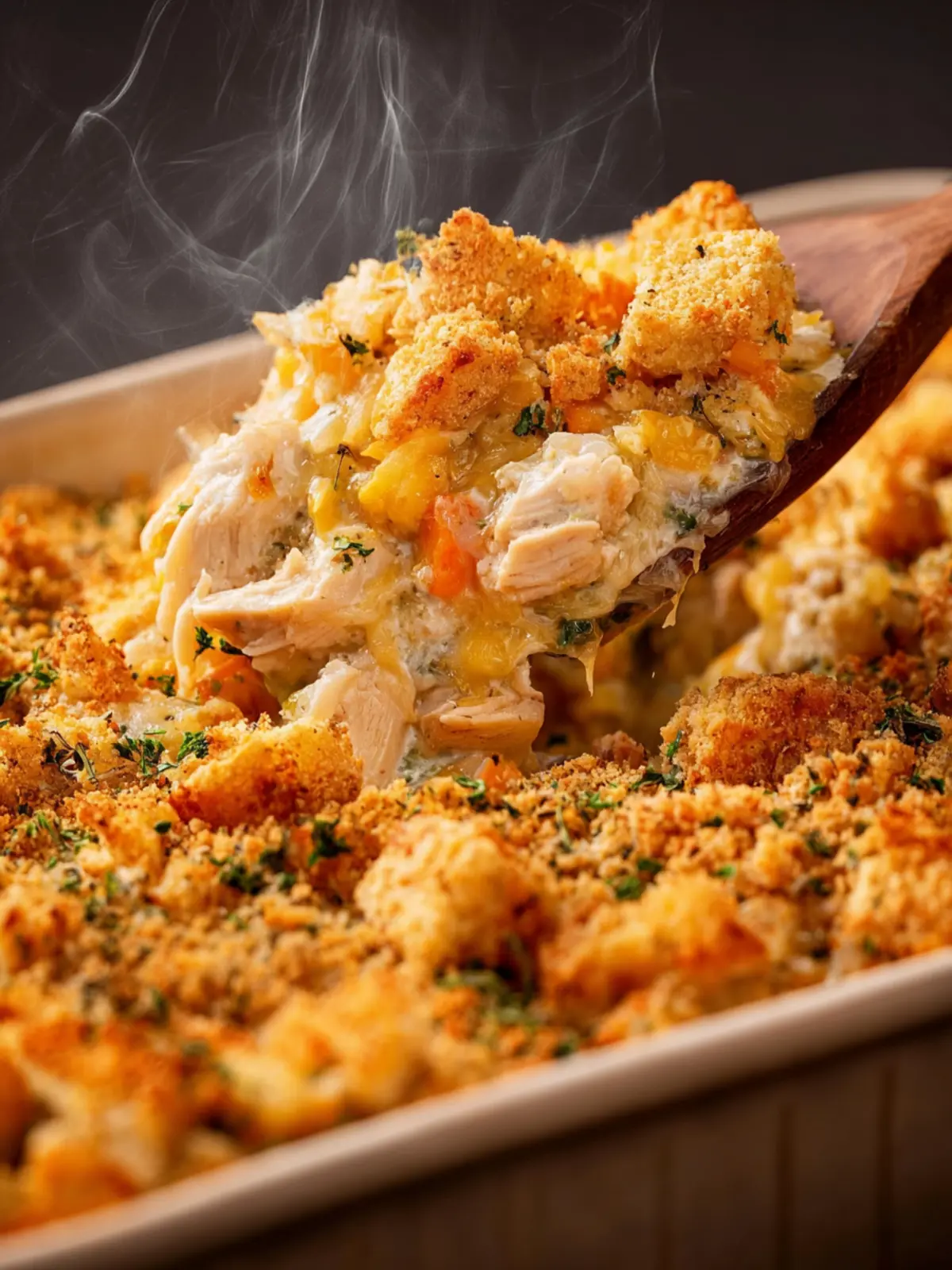 Using Ritz crackers for the topping elevates this casserole to a whole new level. Their buttery crunch perfectly complements the soft chicken and creamy sauce, adding texture and a savory richness that’s hard to resist. Plus, if you’re short on time, this recipe allows you to use rotisserie chicken, making dinner prep a breeze.