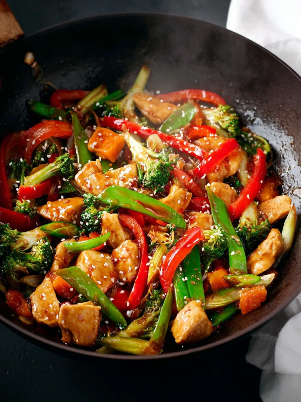 Using a variety of colorful and fresh vegetables enhances texture and nutrition. Bell peppers, broccoli, and snap peas not only look beautiful, but they also bring different crunch levels and flavors to your Chicken Stir Fry Recipe.