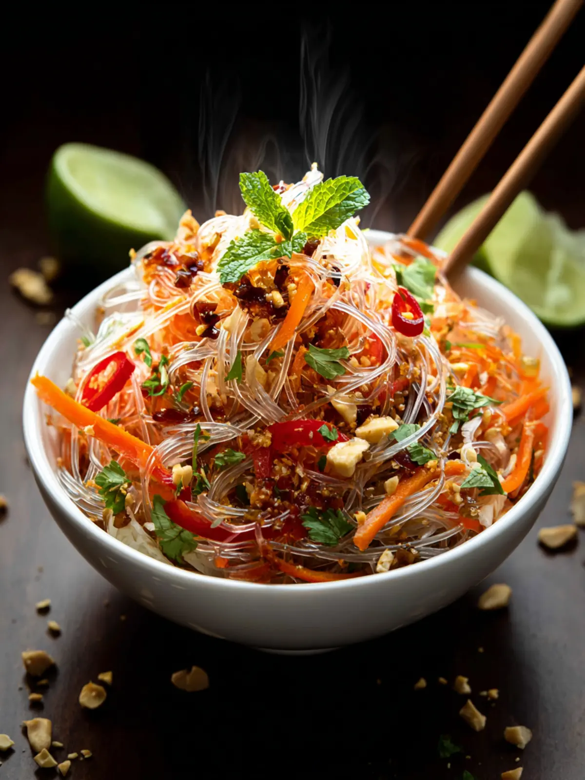 Herbs: Fresh cilantro and mint provide pops of flavor and brightness in every bite. They really enhance the overall freshness of the Chili Crisp Glass Noodle Salad, making it a refreshing choice for any occasion.