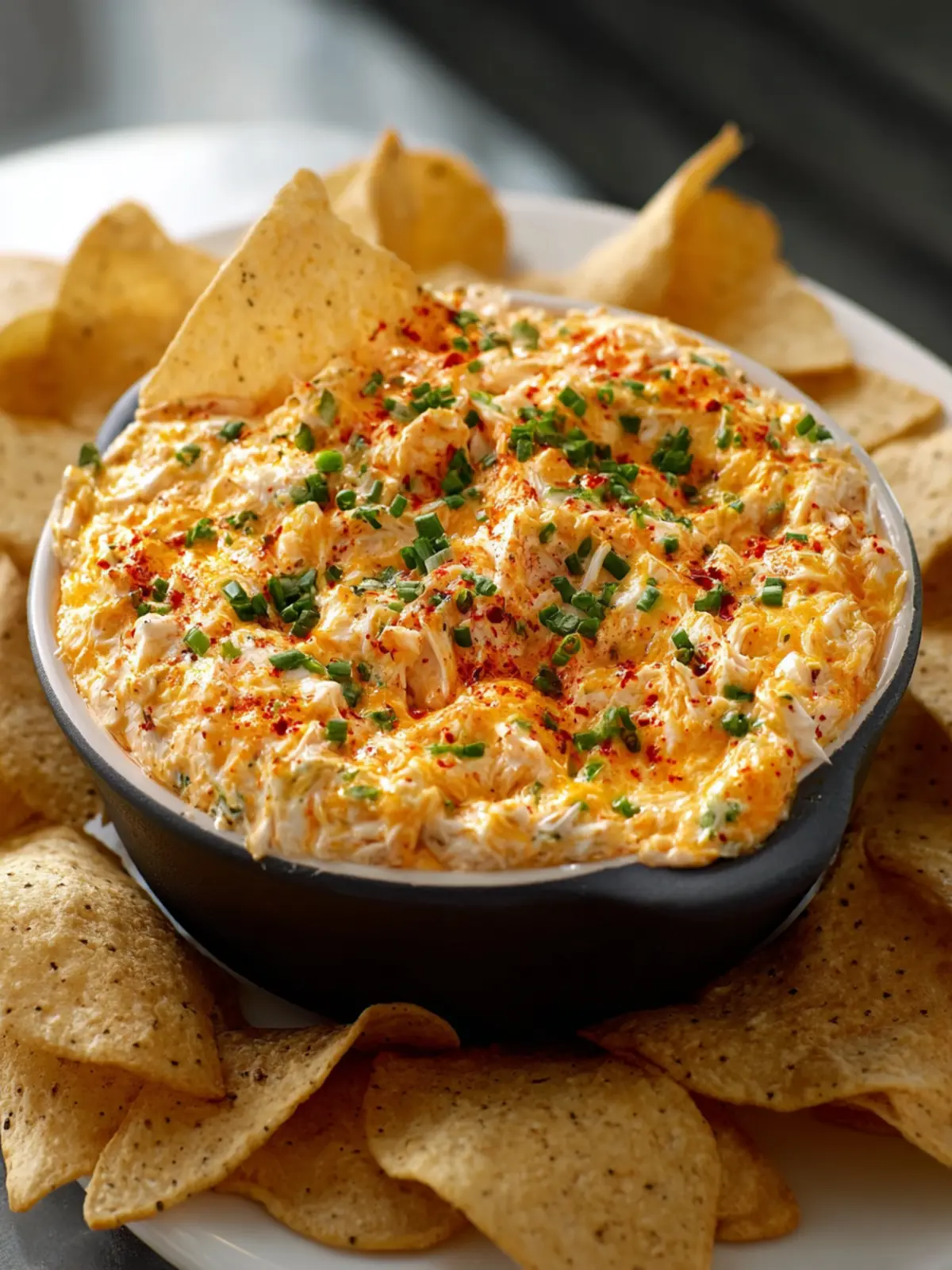 - Remove the dip from the oven and let it rest for 5-10 minutes before serving. Garnish with fresh chopped chives or parsley if desired. Serve warm with your favorite dippers.