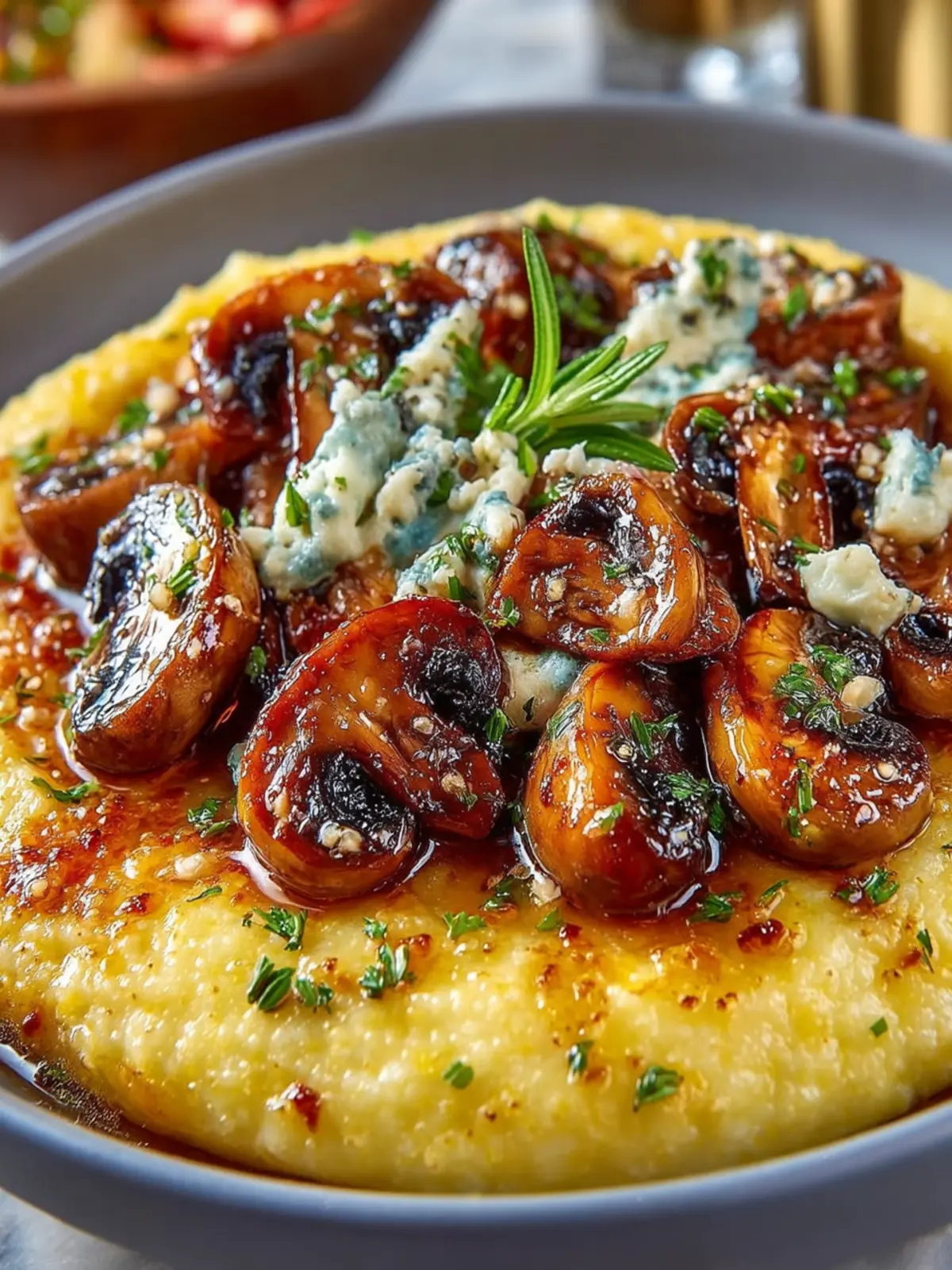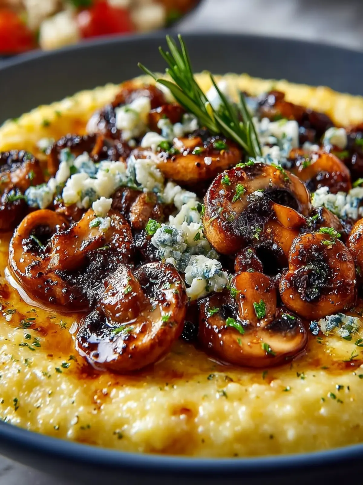 This creamy polenta dish topped with sautéed mushrooms is perfect for a comforting meal.