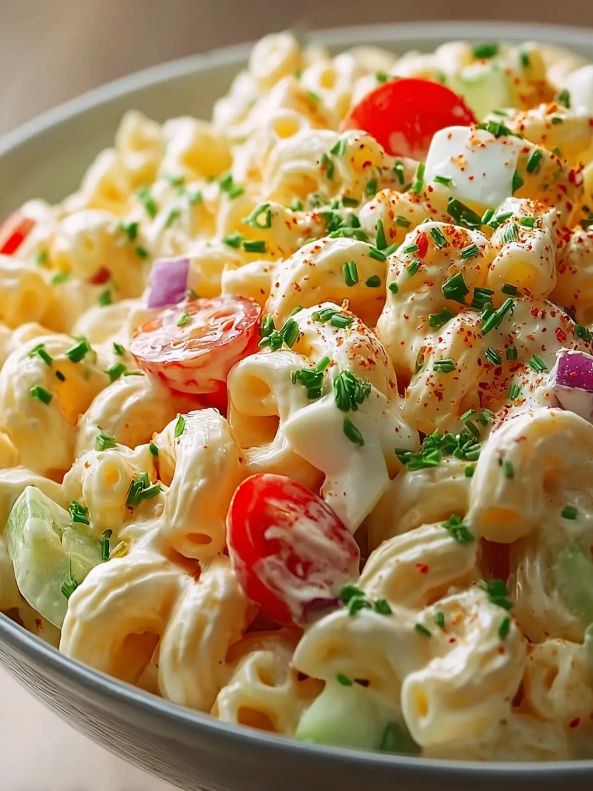 A delicious creamy macaroni salad perfect for any occasion.