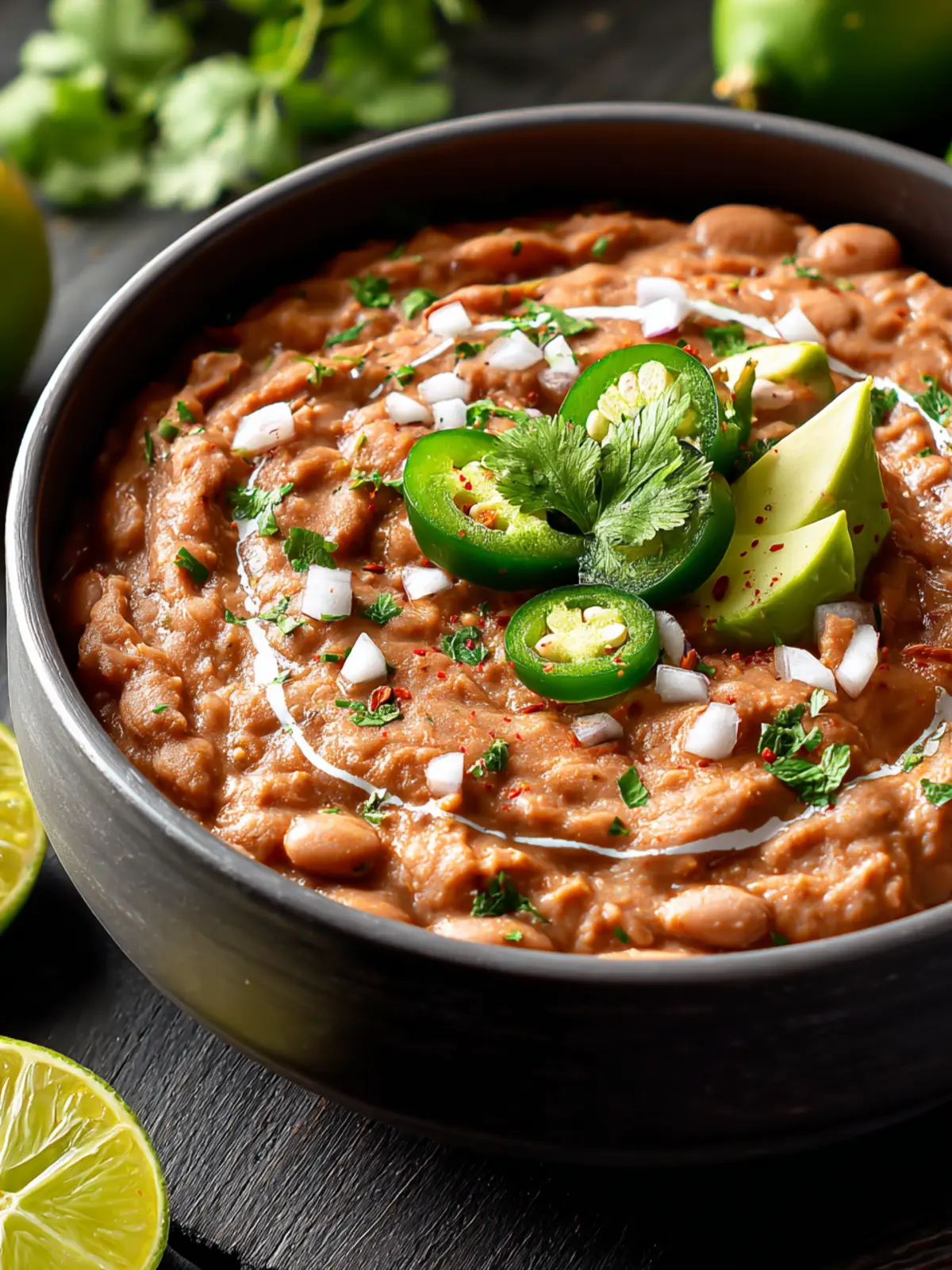 Texture and Creaminess: The use of heavy cream or sour cream elevates the texture from the classic refried beans, making them velvety and indulgent. Each bite is a delightful balance of smoothness and substance that’s hard to resist.