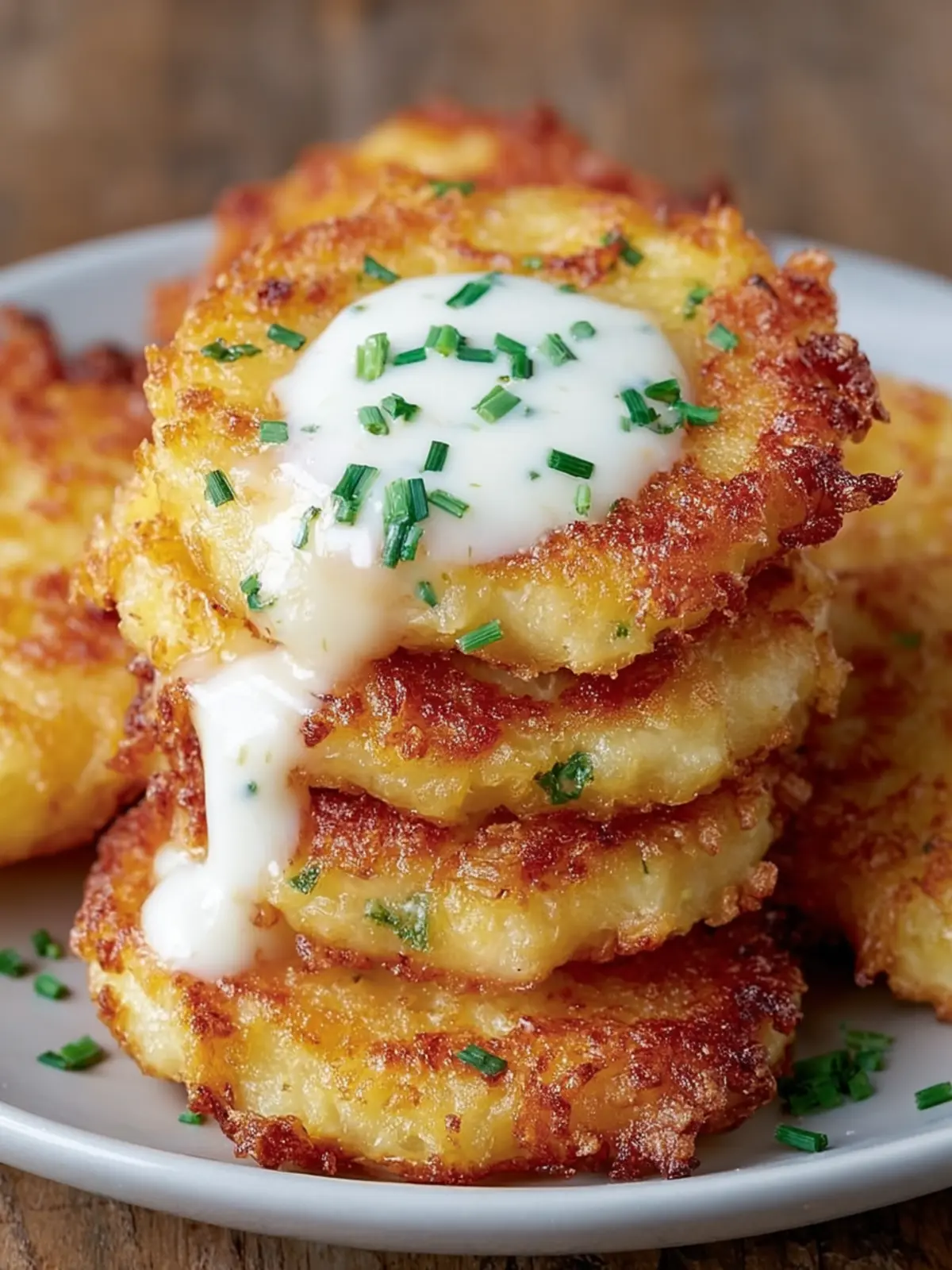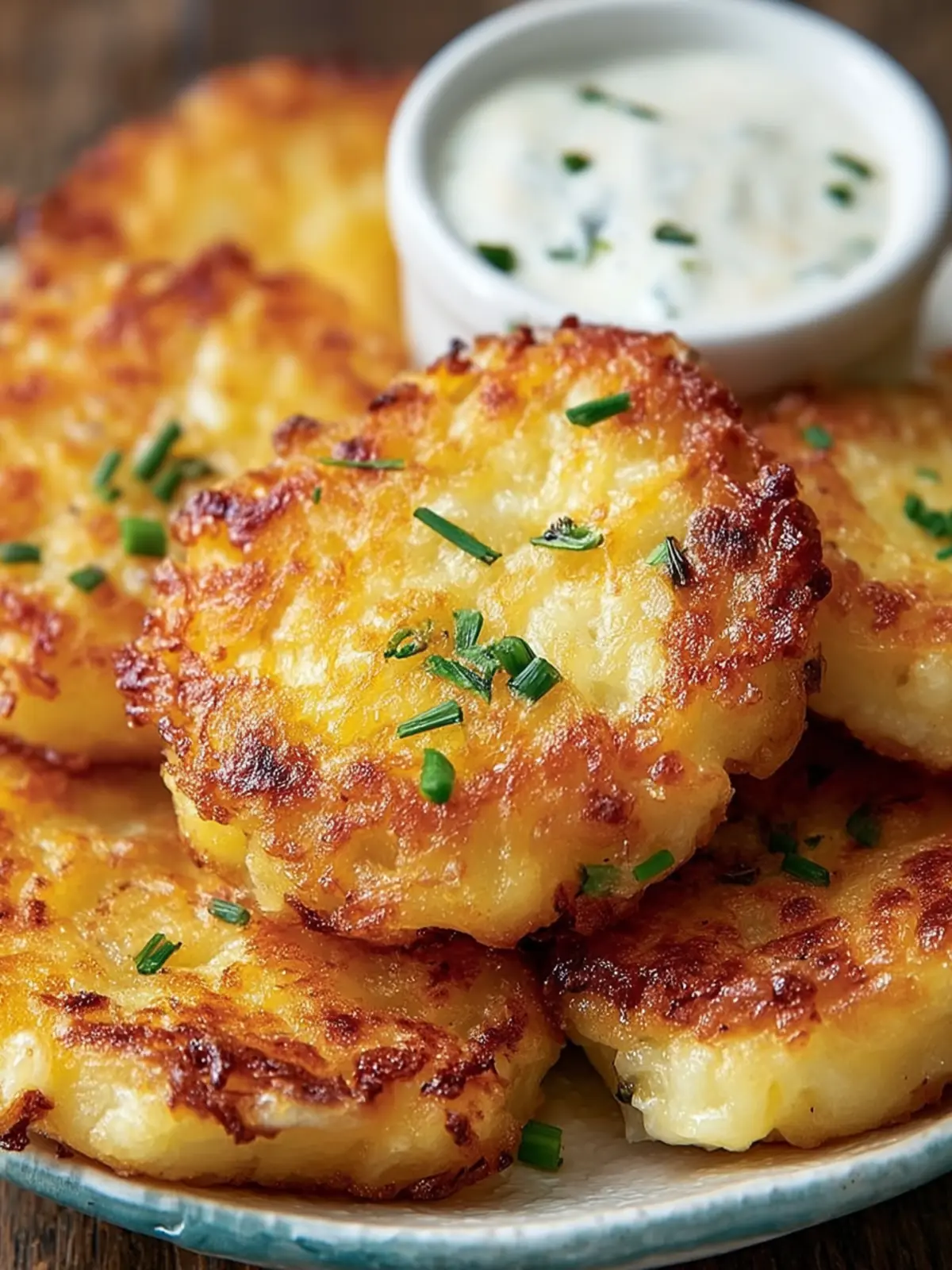 Savory Toppings: Serve your crispy cheesy potato pancakes with a dollop of sour cream, Greek yogurt, or a homemade tzatziki sauce. A fresh cucumber salad on the side would complement the flavors beautifully.