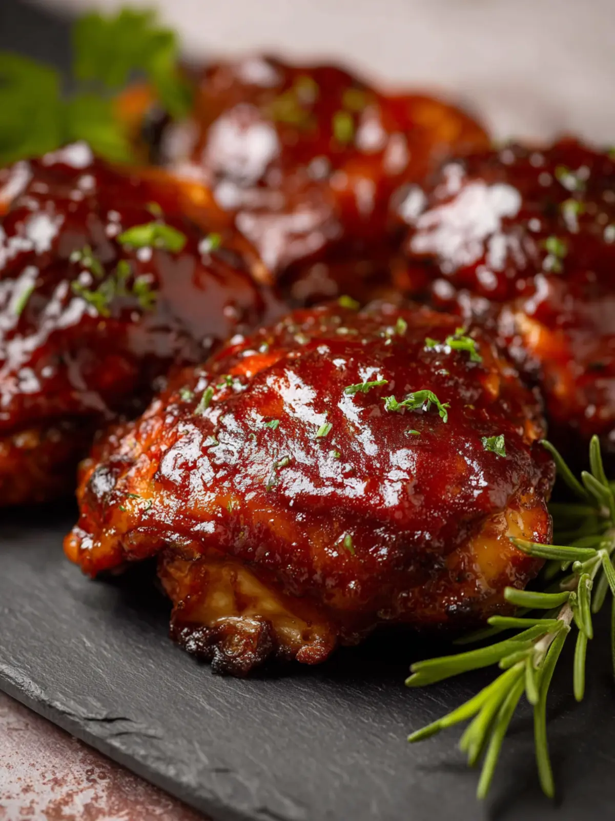 Delicious slow-cooked BBQ chicken thighs seasoned with a flavorful spice mix.