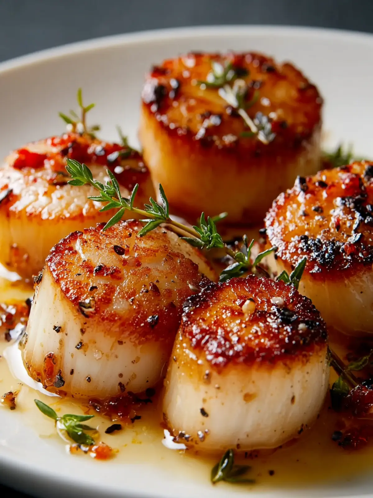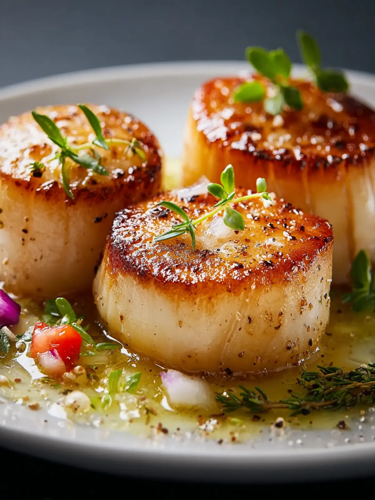 Fresh Herbs: A sprinkle of fresh herbs, such as thyme or parsley, adds brightness and a fresh flavor that complements the scallops beautifully.