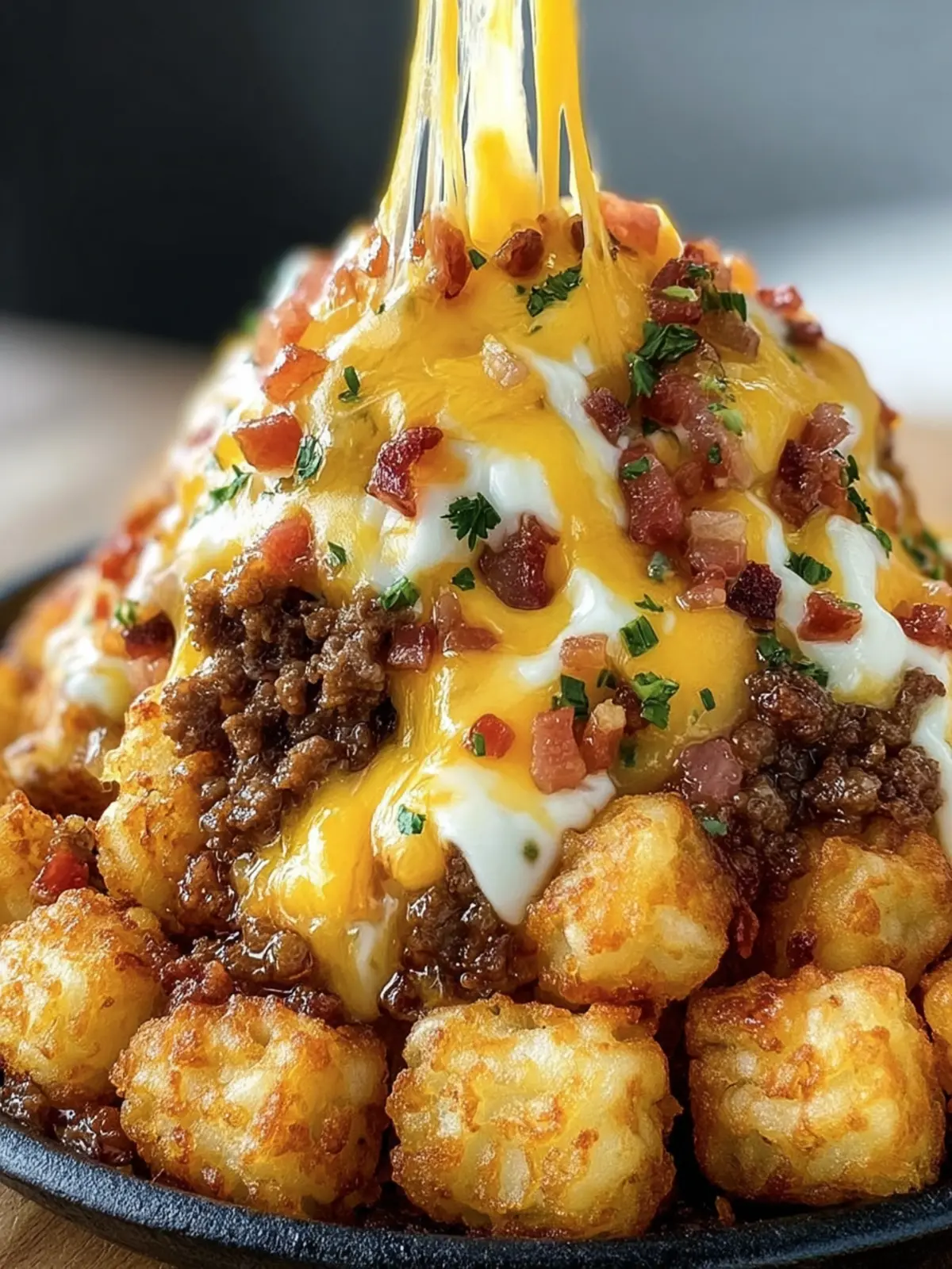 Tater Tots: The star of this recipe, the tater tots provide a crispy and golden base. Use frozen tater tots for convenience; they crisp up perfectly in the oven or fryer.