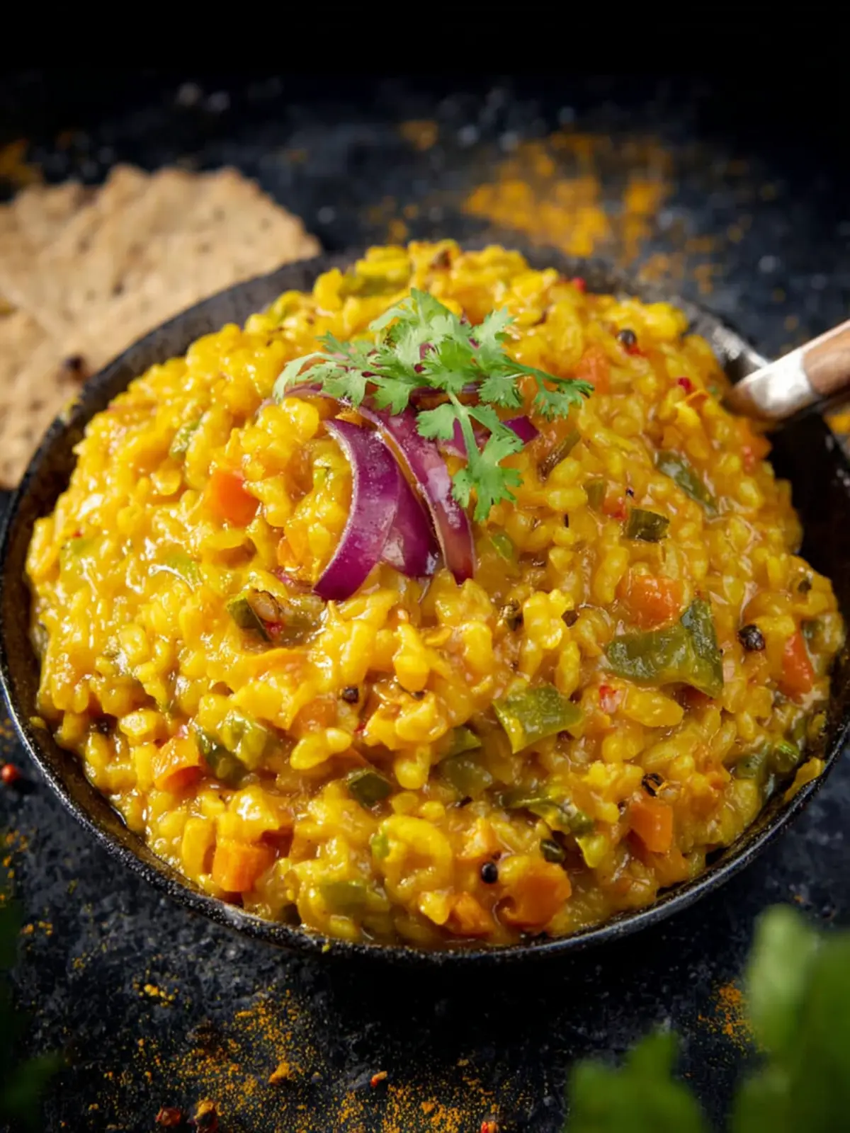 Serve with Papad: Crisp papads provide a delightful crunch and an extra layer of flavor that complements the soft texture of masala khichdi.