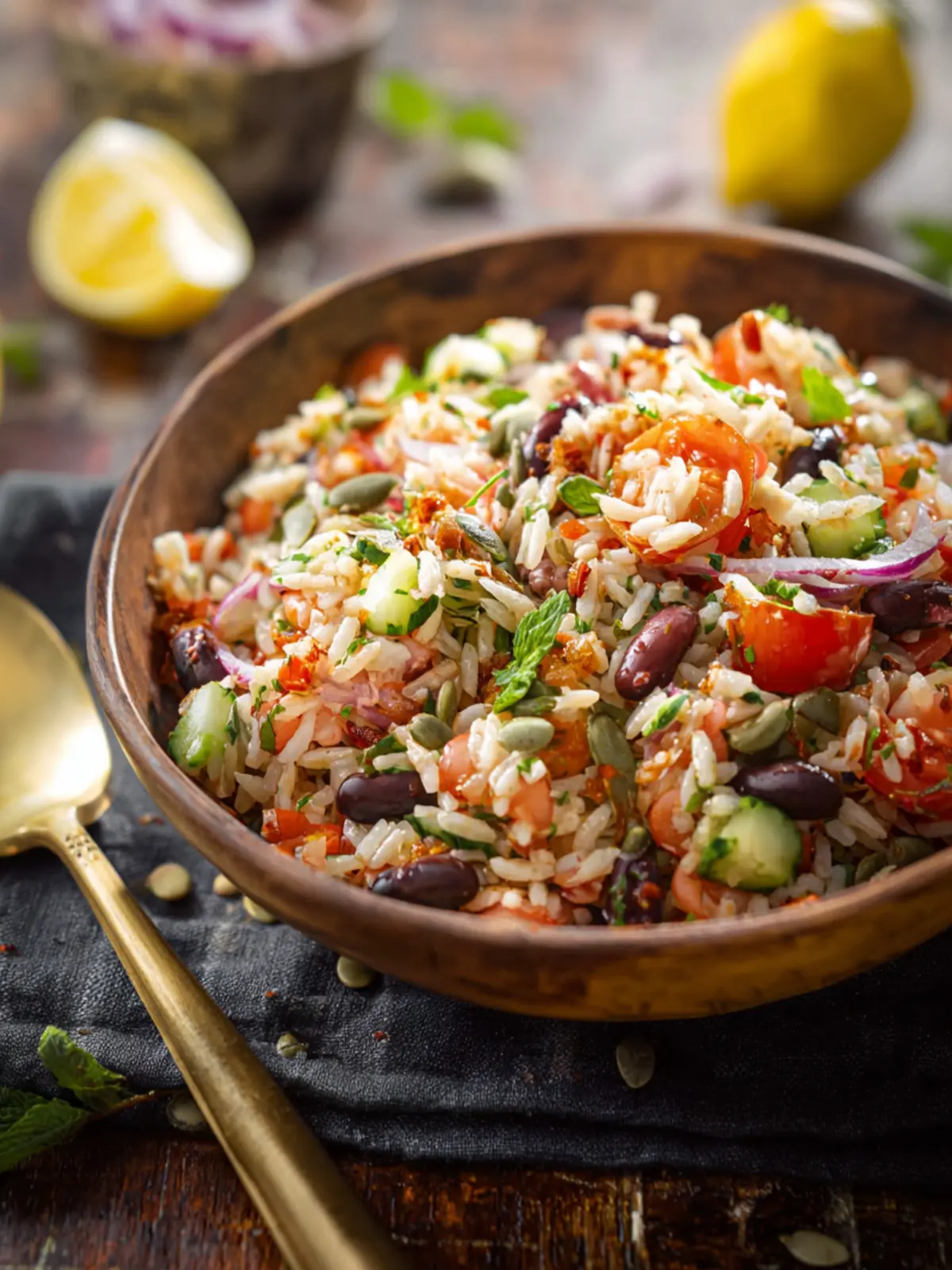 Whether you’re hosting friends or looking for a healthy meal prep option, the Mediterranean Bean & Rice Salad is the perfect fit!