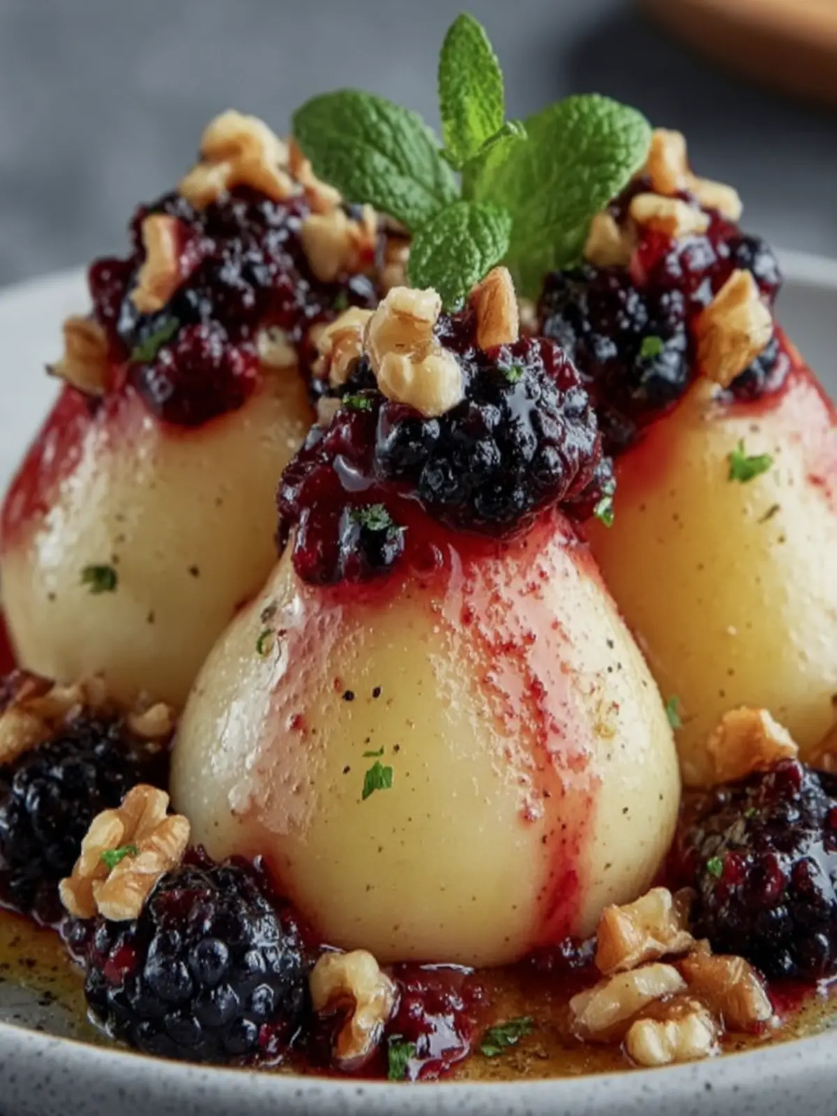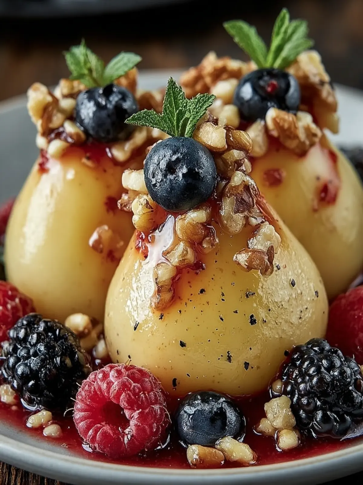 Remember, the presentation matters: arrange the fruit artfully on a plate, drizzled with the poaching liquid, and sprinkle extra berries and walnuts around. Your guests won’t just enjoy the taste—they’ll remember the moment.