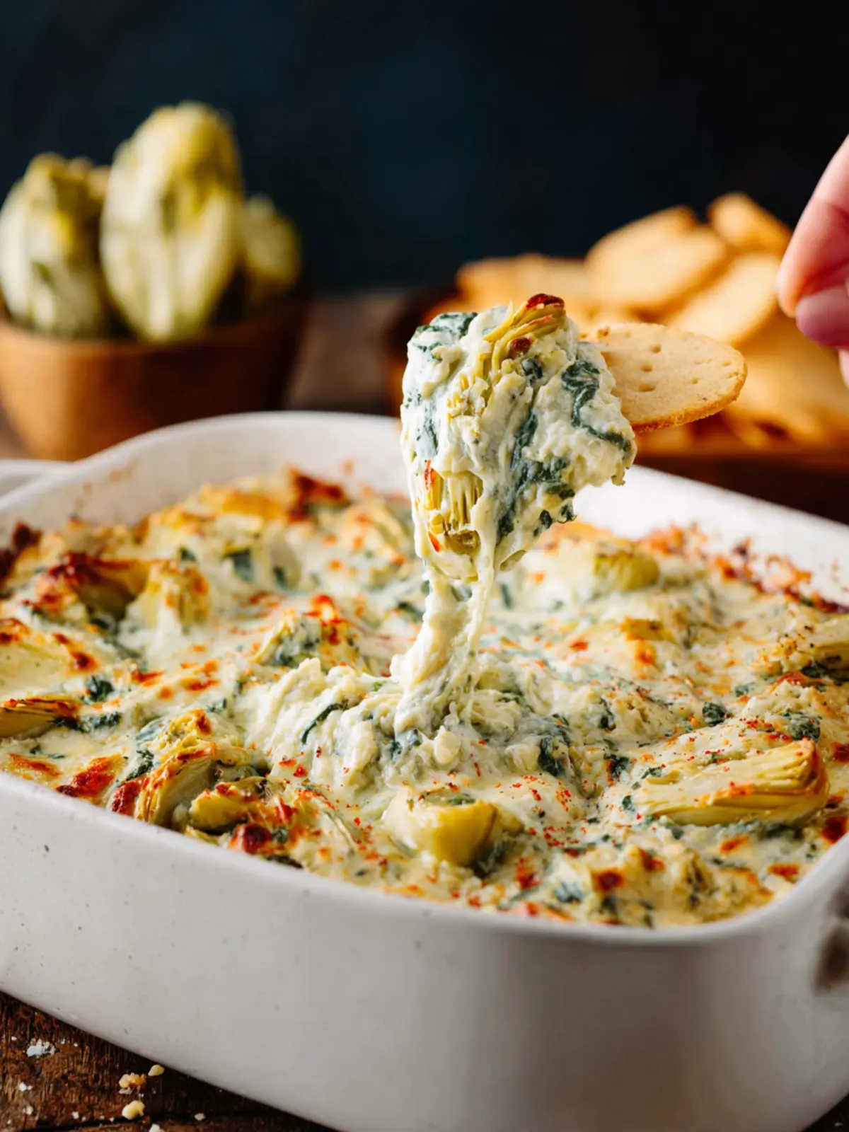 - **Mixing**: Avoid overmixing your ingredients. A gentle fold will create a nice texture with hearty chunks of spinach and artichokes peeking through.