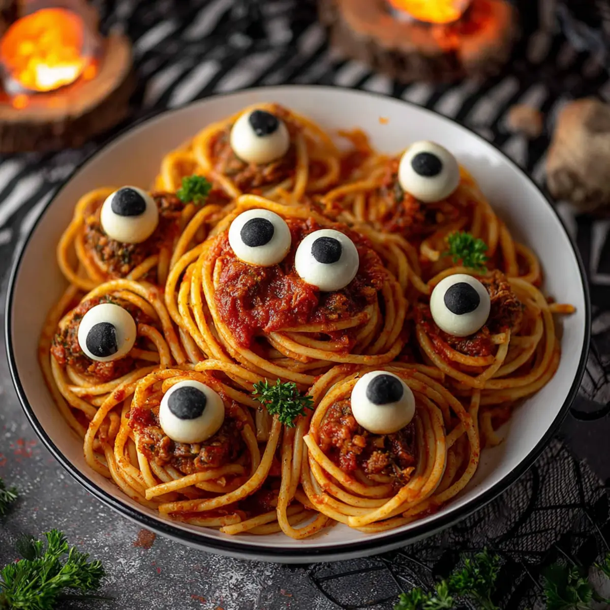 A fun and spooky Halloween-themed spaghetti dish that will delight both kids and adults!