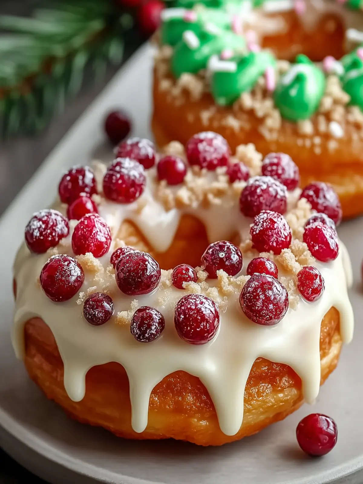 Each doughnut is infused with warm, holiday spices like cinnamon and nutmeg, perfectly balancing sweetness and flavor. Topped with a vibrant glaze and festive sprinkles, these doughnuts not only taste great but also look stunning on any dessert table.