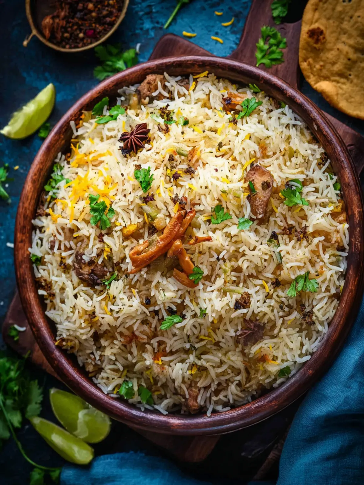 Basmati Rice: Always use aged basmati rice for a fluffier texture and essential aroma. Soaking the rice for at least 30 minutes not only shortens cooking time but also prevents it from becoming mushy.